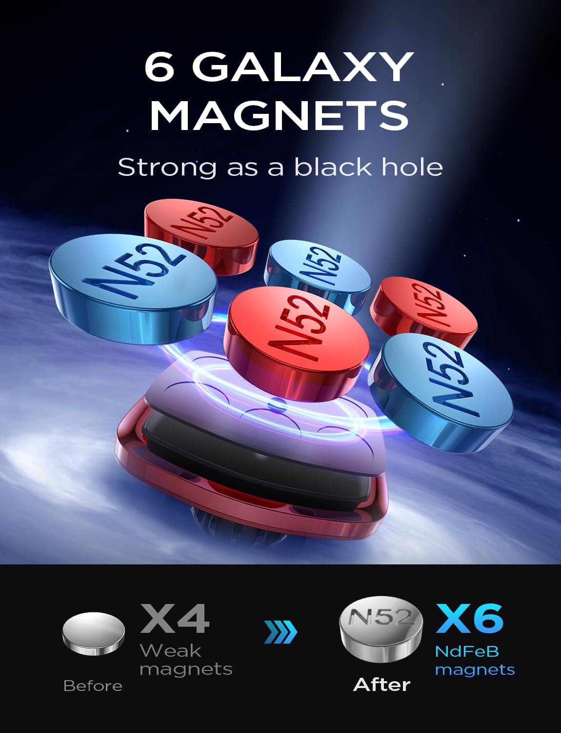 - 👍LOCK YOUR PHONE STABLE: LISEN magnetic car phone holder mounts with 6 built-in strong neodymium iron boron magnets that hold up to 7.7lb / 3.5kg (15 x iPhone 13). Thanks to the strong suction power, your mobile phone or tablet will be kept in place even on bumpy roads. PLEASE NOTE: 1. The phone holder for car fits all 4-7'' iPhone, Samsung, and other cellphones with thick cases. 2. It is recommended to install the metal plate on the back of the phone or phone case.