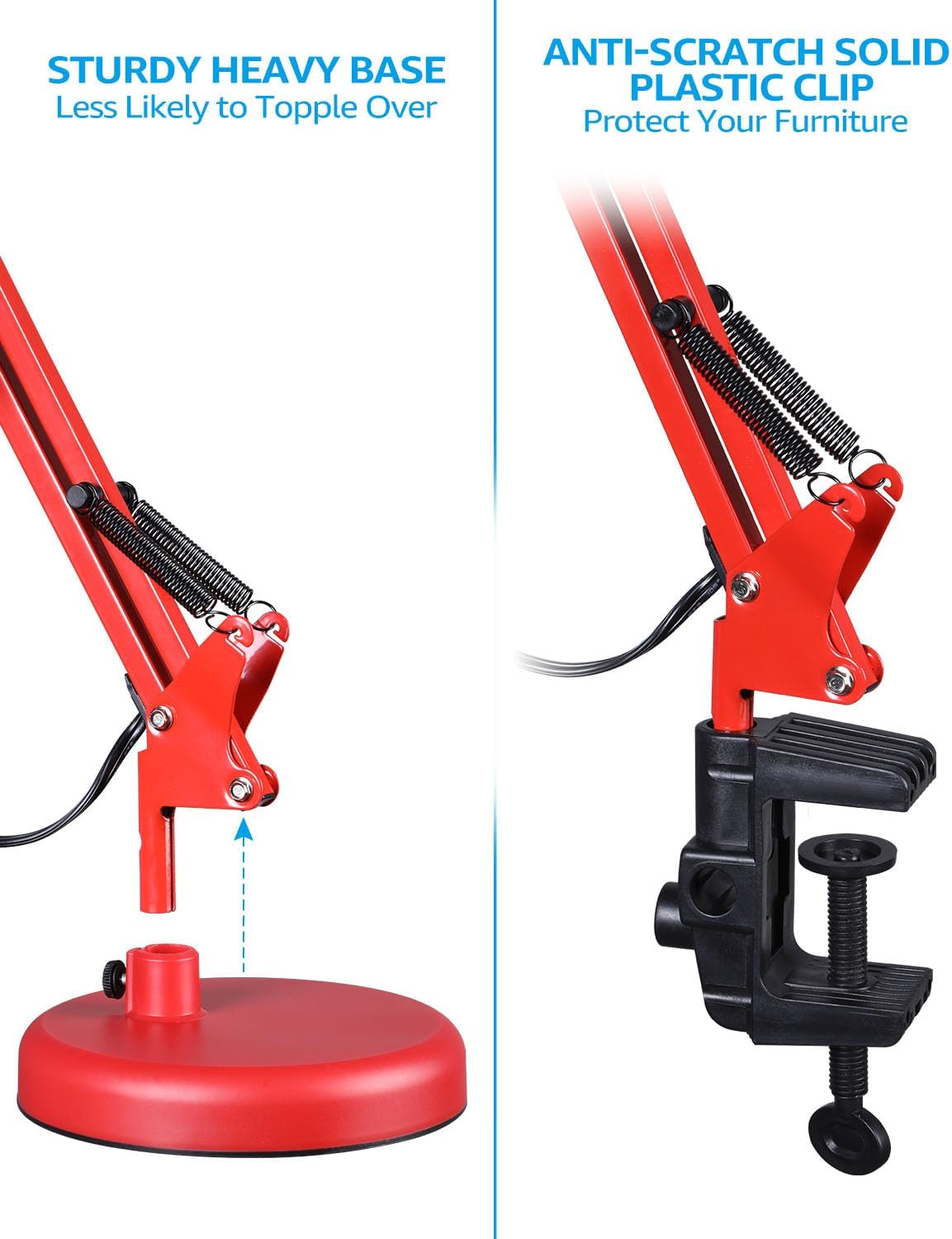 - 💡 PREMIUM QUALITY: The lamp stands firmly thanks to the weighted base and the swing arm and lamp shade are made from solid metal with a black finish, making them durable and exquisite to look at. The power plug is UL-listed, making it safe to use