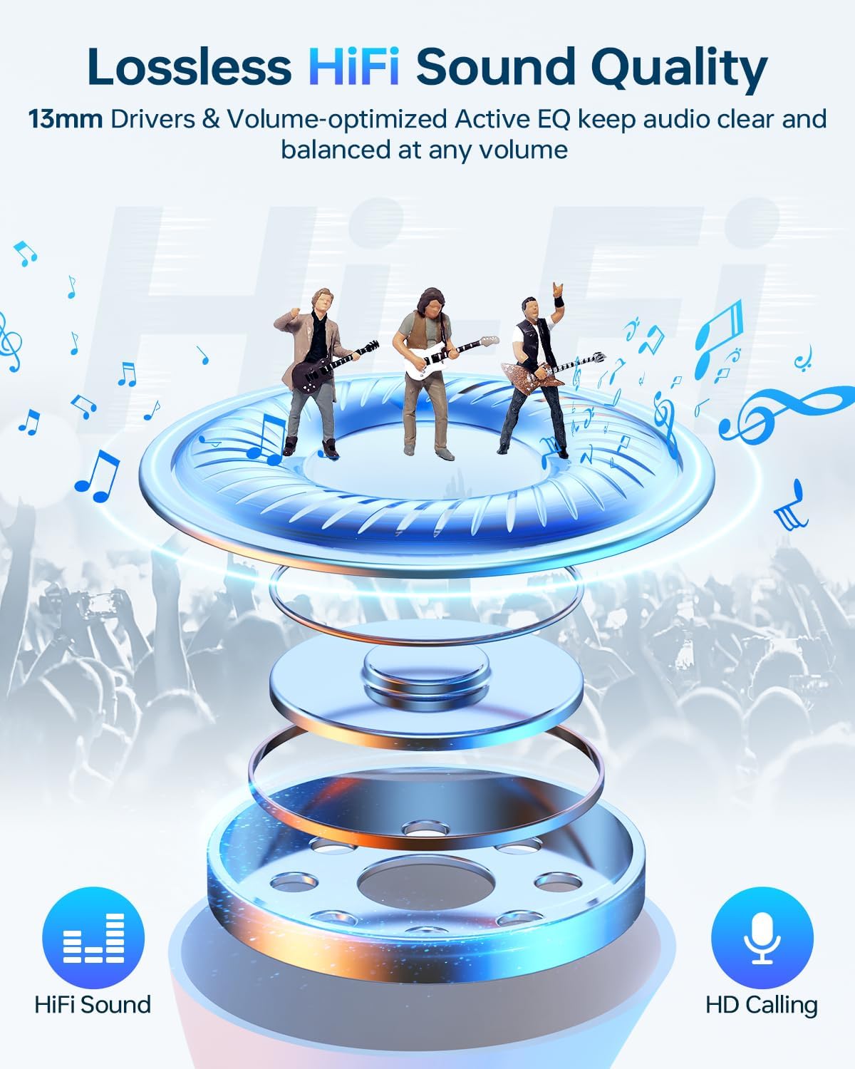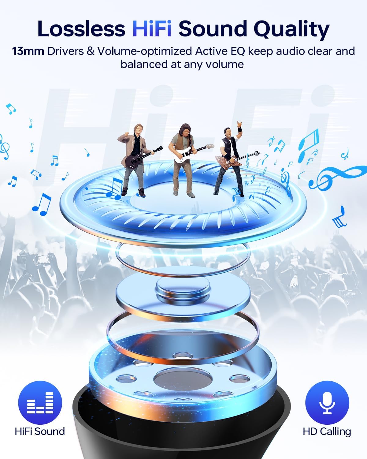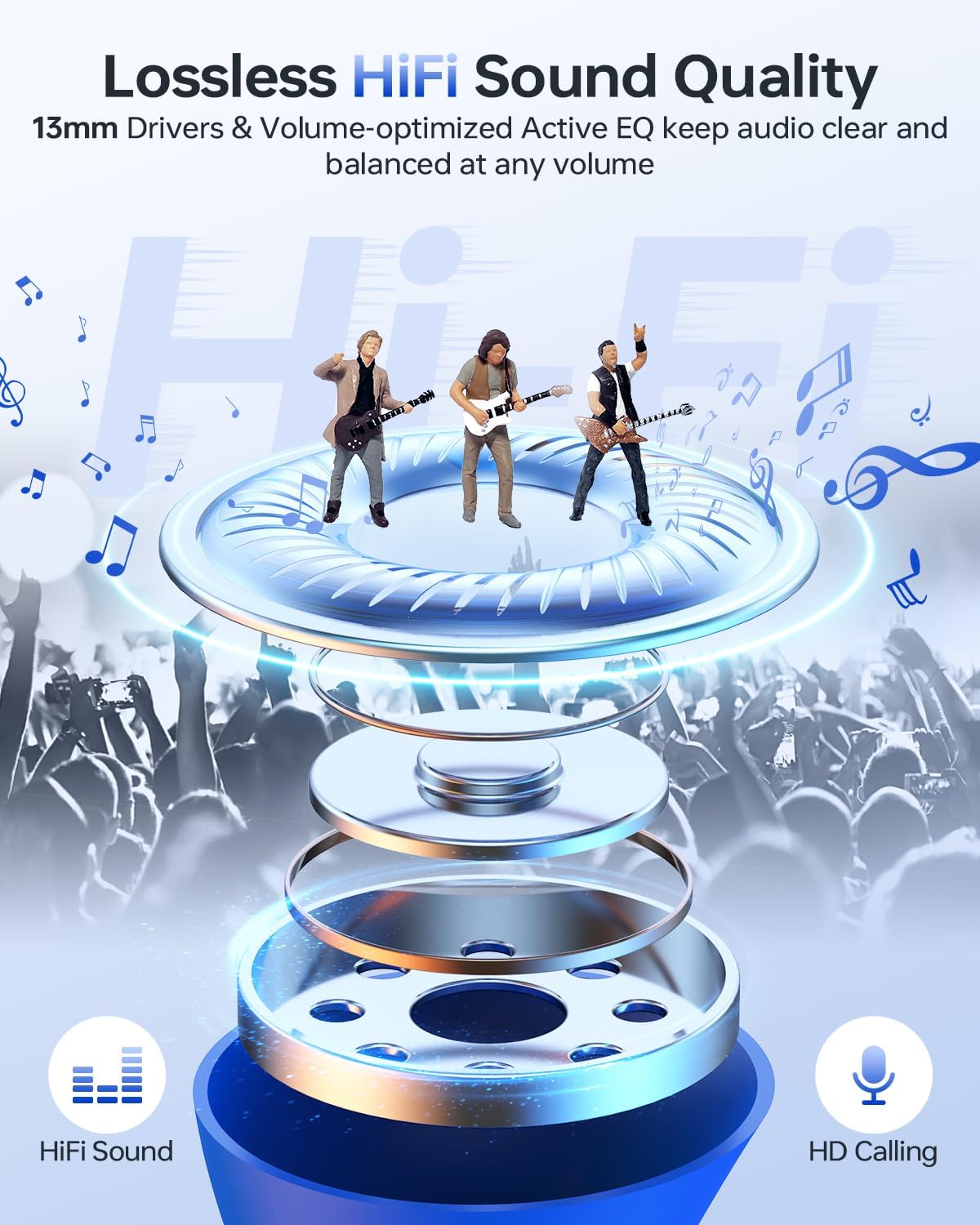 - Immersive Stereo Sound and Superior Clear Call: With 13mm speakers and the latest chips, our Bluetooth headphones can deliver powerful bass, clear mids and bright treble to immerse you into music. The built-in mic in each bluetooth earphones utilizes call noise cancellation to ensure clear and realistic sound. It will allow you to enjoy high-quality conversations anytime, anywhere.