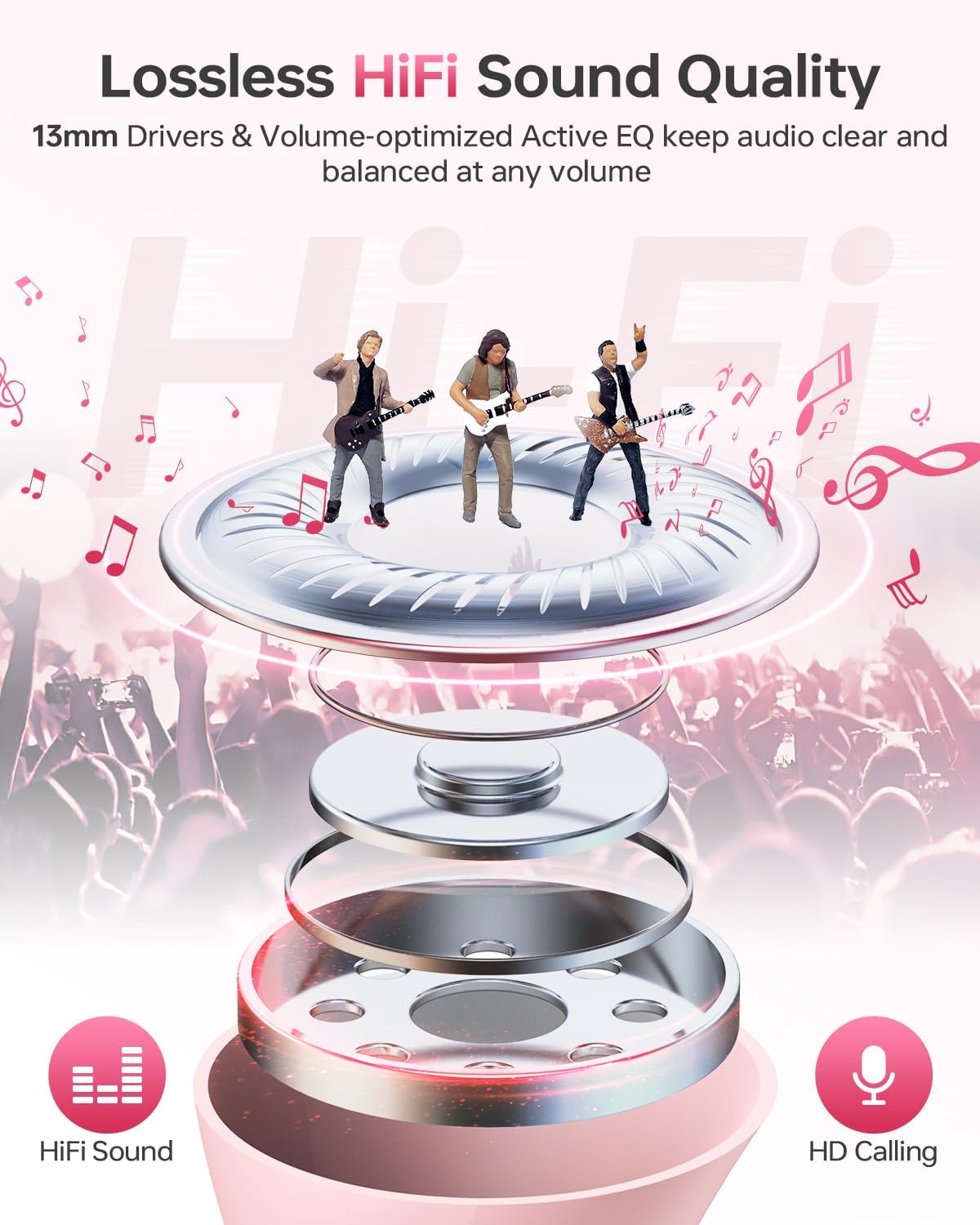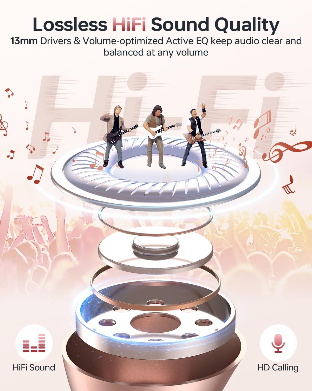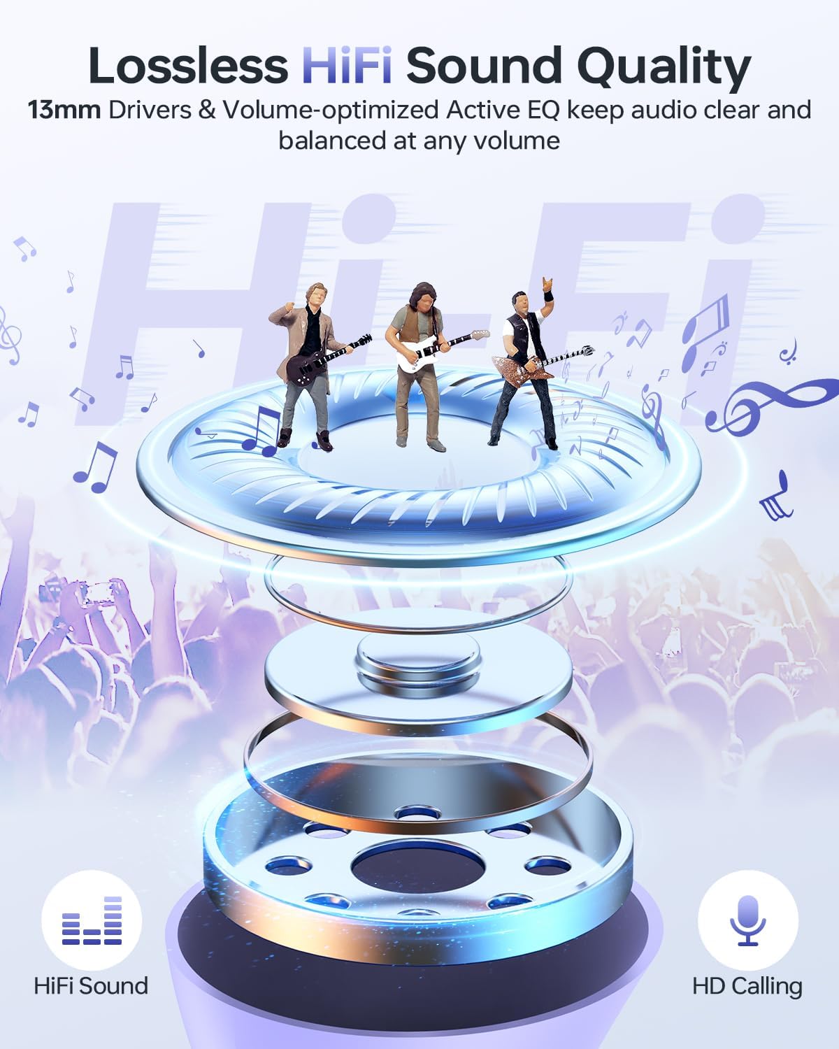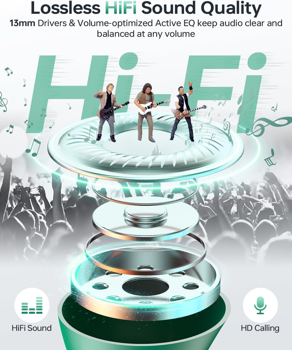 - Immersive Stereo Sound and Superior Clear Call: With 13mm speakers and the latest chips, our Bluetooth headphones can deliver powerful bass, clear mids and bright treble to immerse you into music. The built-in mic in each bluetooth earphones utilizes call noise cancellation to ensure clear and realistic sound. It will allow you to enjoy high-quality conversations anytime, anywhere.