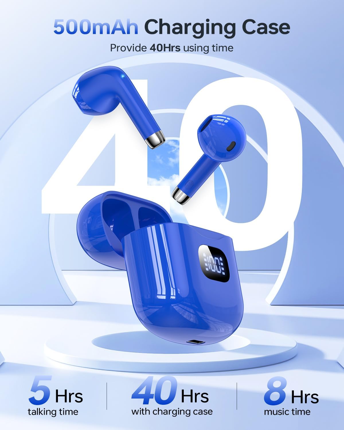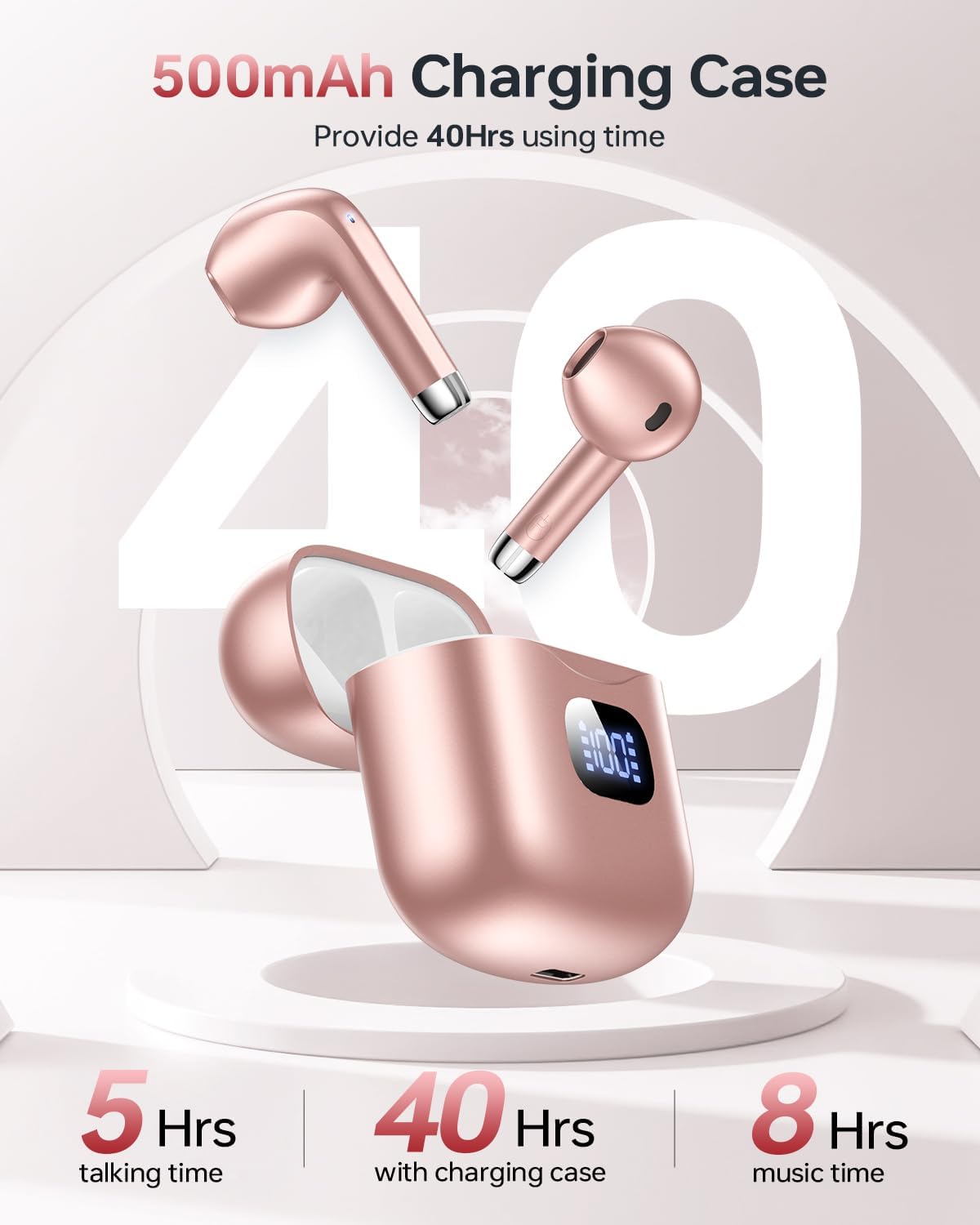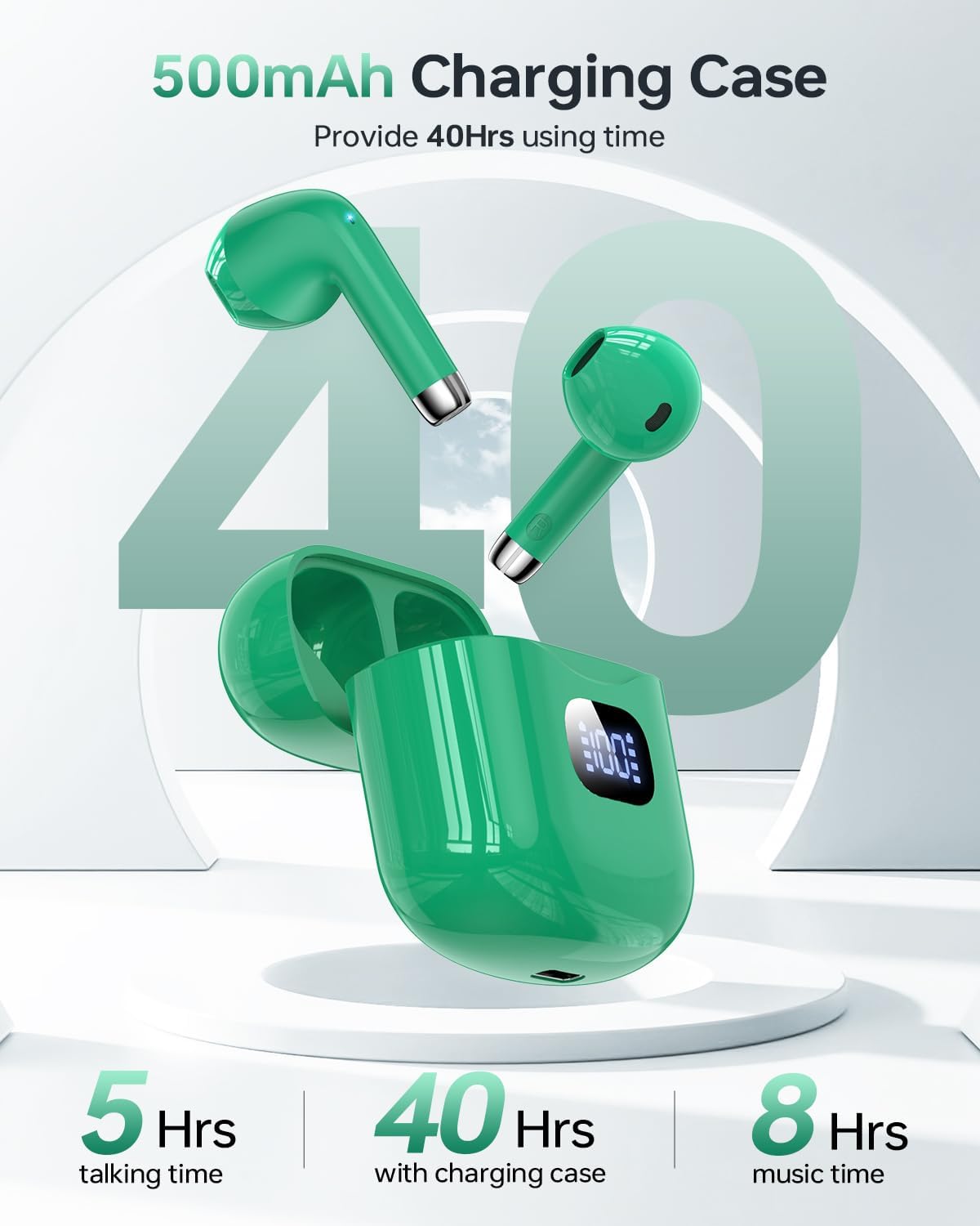 - LED Power Display & 40 Hours Playback: The T08 wireless earbuds can be used for about 8 hours (50%-60% volume) on a single charge, and with the compact charging case allows you to use them for 40 hours continuously. The Type-C charging port provides a faster and more convenient charging experience. The built-in dual LED power display allows you to keep track of the remaining power in the charging case and the charging status of the earbuds in real time.