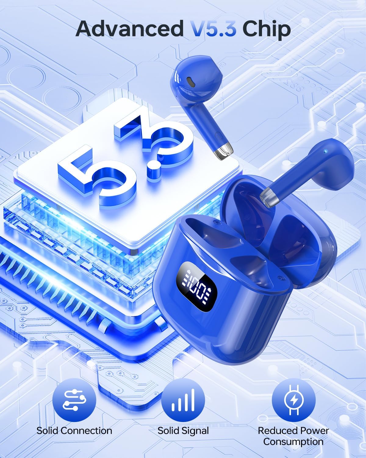 - Latest Bluetooth 5.3 One Step Auto Pairing: T08 Bluetooth Earbuds are equipped with the latest technology of Bluetooth version 5.3, which has more stable transmission, lower power consumption and offers extended range with fewer dropouts than Bluetooth 5.1, providing you with an uninterrupted calling and music experience. Once paired for the first time, simply take the two wireless earbuds out of the charging case, they will automatically pair. Compatible for iOS/Android/Windows devices.